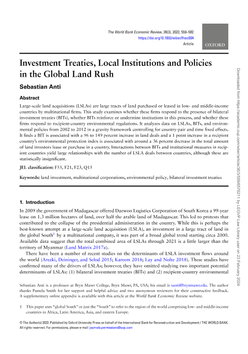 【The World Bank】【2022】Investment Treaties, Local Institutions and Policies in the Global Land Rush-24页