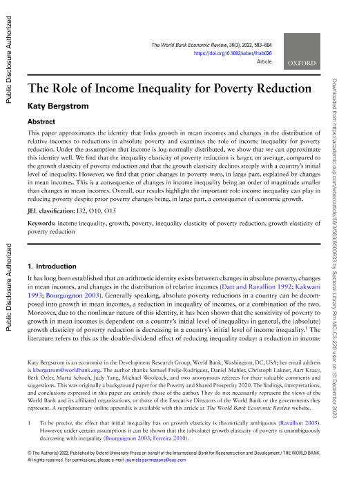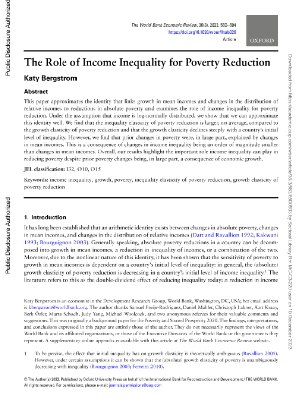 【World Bank】【2022】The Role of Income Inequality for Poverty Reduction-22页