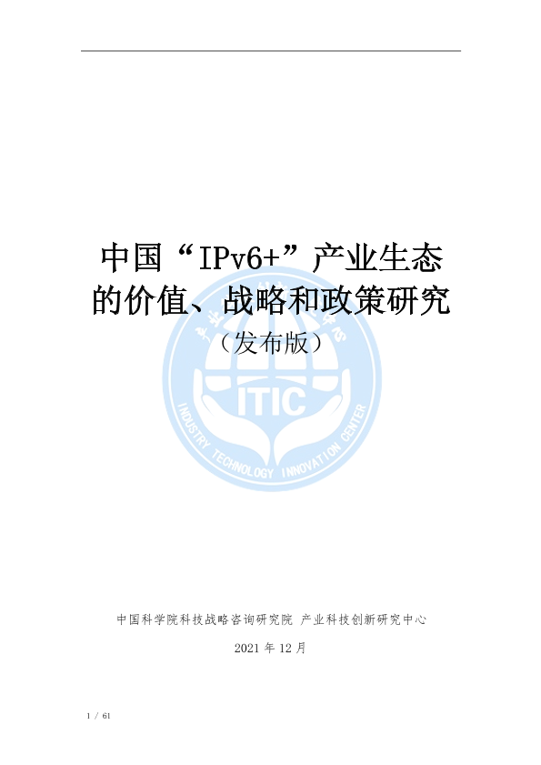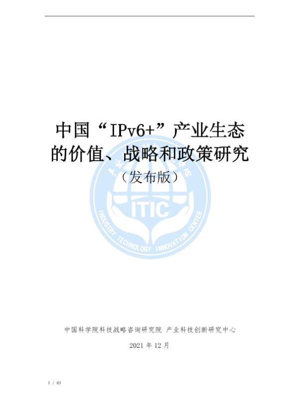 【中国科学院科技战略咨询研究院】【20230101】中国“IPv6+”产业生态的价值、战略和政策研究-61页