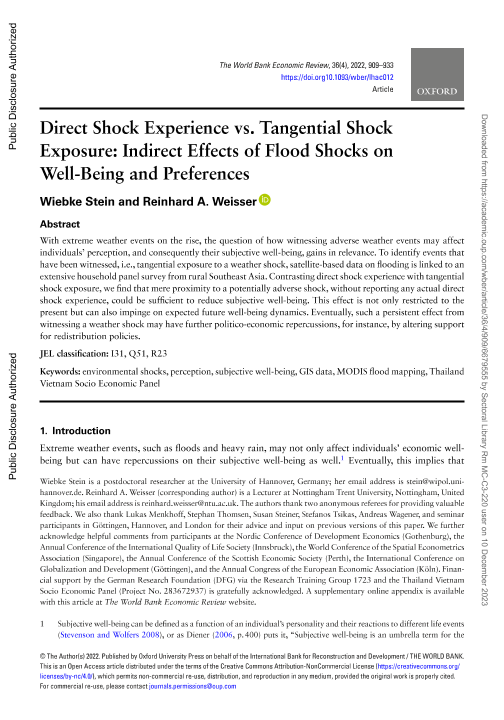 【The World Bank】【2022】Direct Shock Experience vs. Tangential Shock Exposure Indirect Effects of Flood Shocks on Well-Being and Preferences-25页