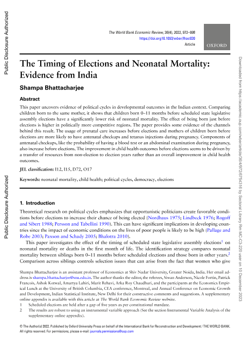 【The World Bank】【2022】The Timing of Elections and Neonatal Mortality Evidence from India-27页