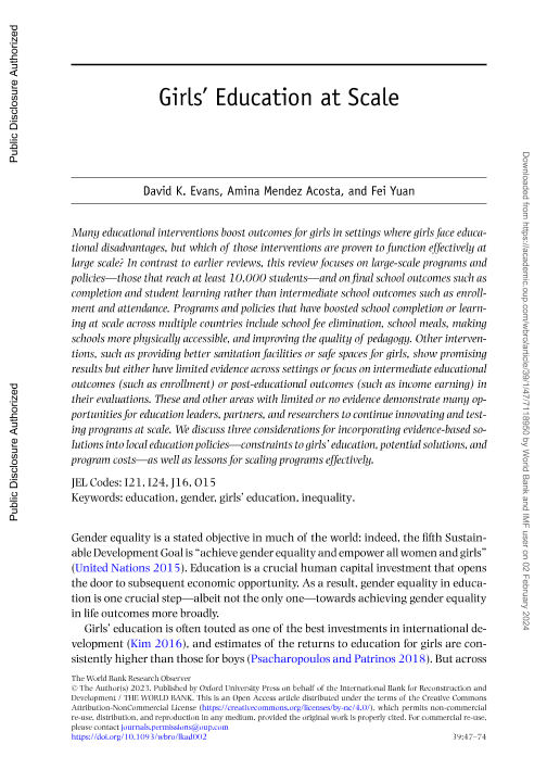 【World Bank】【2023】Girls’ Education at Scale-59页
