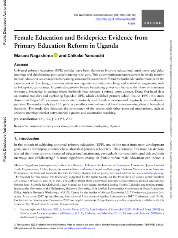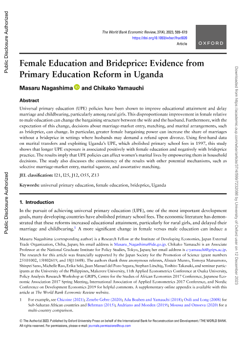 【The World Bank】【2023】Female Education and Brideprice Evidence from Primary Education Reform in Uganda-21页