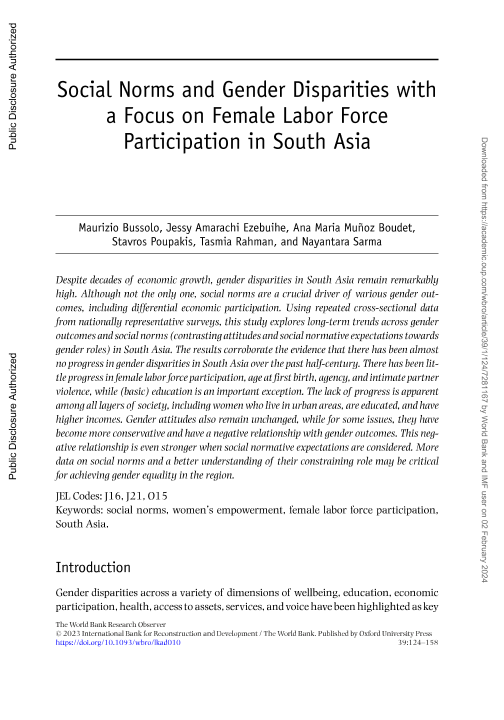 【The World Bank】【2023】Social Norms and Gender Disparities with a Focus on Female Labor Force Participation in South Asia-56页