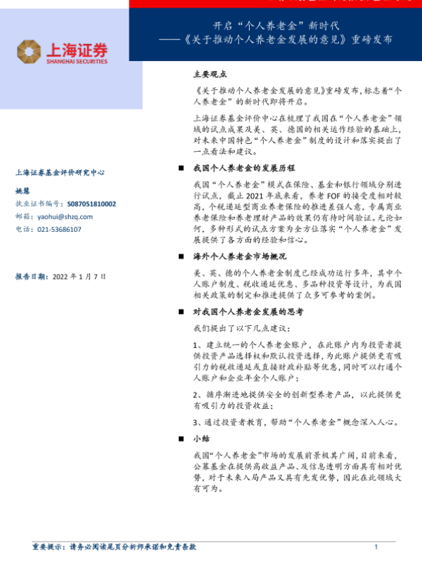 【上海证券】【20220107】关于推动个人养老金发展的意见重磅发布:开启“个人养老金”新时代-24页