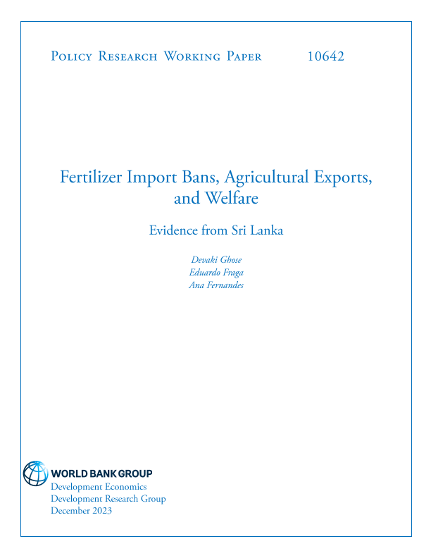 【World Bank】【2023】Fertilizer Import Bans, Agricultural Exports, and Welfare Evidence from Sri Lanka-98页