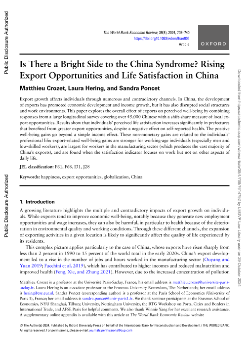 【The World Bank】【2024】Is There a Bright Side to the China Syndrome? Rising Export Opportunities and Life Satisfaction in China-43页