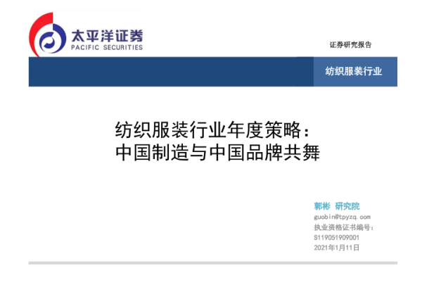 【太平洋证券】【20220111】202201纺织服装行业年度策略:中国制造与中国品牌共舞-27页