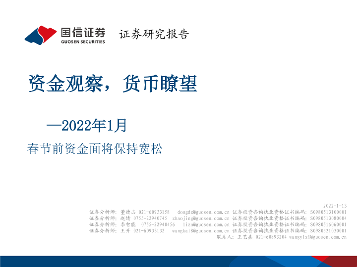 【国信证券】【20220113】2022年1月-资金观察,货币瞭望:春节前资金面将保持宽松-27页
