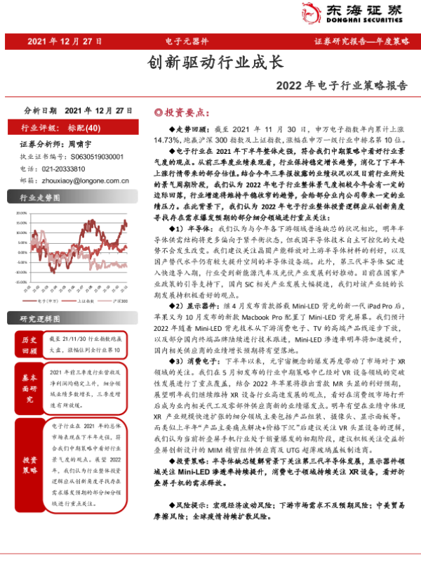 【东海证券】【20211227】2022年电子行业策略报告:创新驱动行业成长-25页