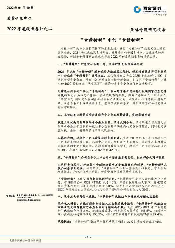 【国金证券】【20220110】2022年度观点番外之二:“专精特新”中的“专精特新”-17页