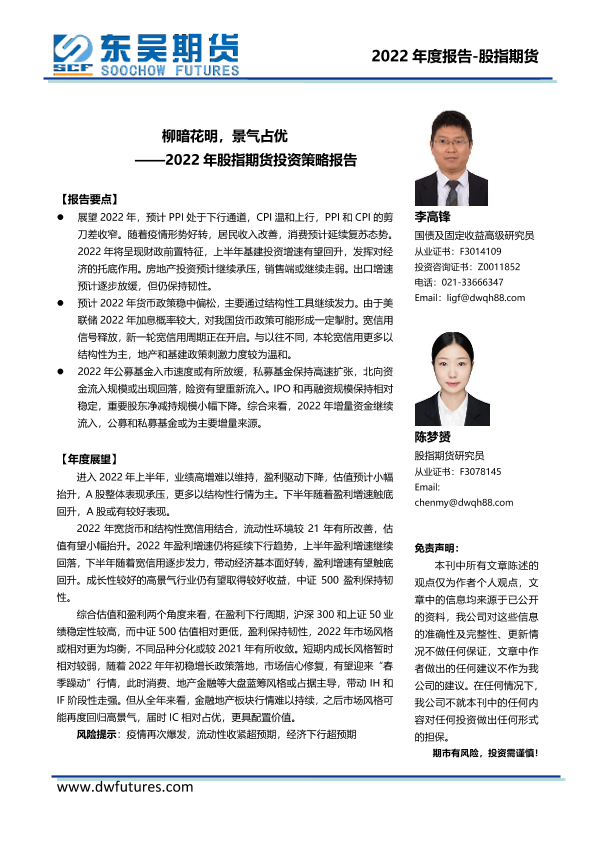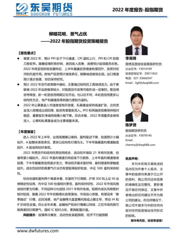 【东吴期货】【20220113】2022年股指期货投资策略报告:柳暗花明,景气占优-27页