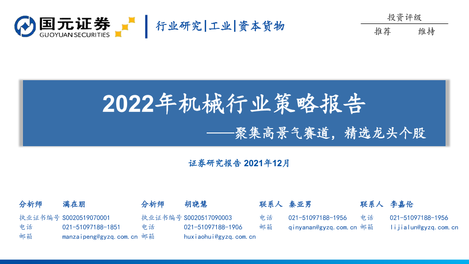 【国元证券】【20211231】2022年机械行业策略报告:聚集高景气赛道,精选龙头个股-68页