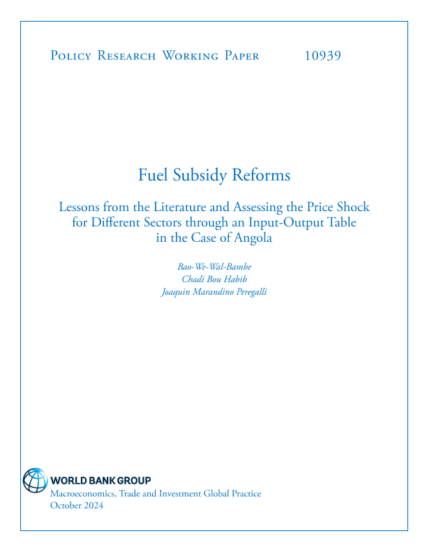 【World Bank】【2024】Fuel Subsidy Reforms Lessons from the Literature and Assessing the Price Shock for Different Sectors through an Input-Output Table in the Case of Angola-21页