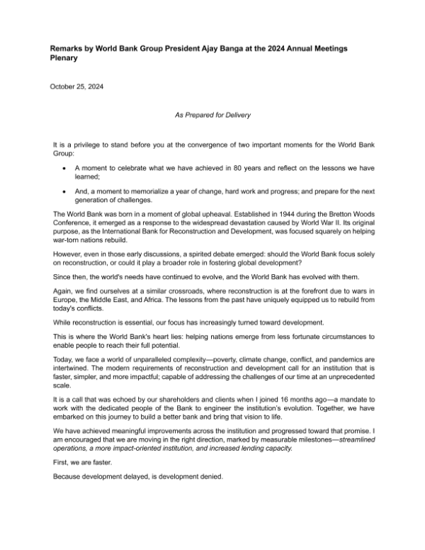 【World Bank Group】【20241025】Remarks by World Bank Group President Ajay Banga at the 2024 Annual Meetings Plenary-8页