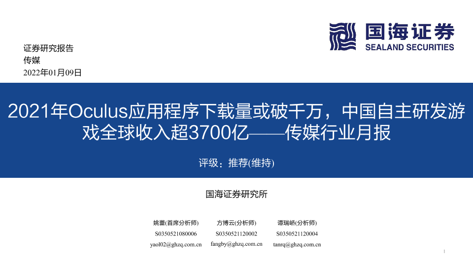 【国海证券】【20220109】传媒行业月报:2021年Oculus应用程序下载量或破千万,中国自主研发游戏全球收入超3700亿-32页