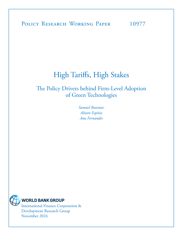 【International Finance Corporation&Development Research Group】【2024】High Tariffs, High Stakes The Policy Drivers behind Firm-Level Adoption of Green Technologies-71页