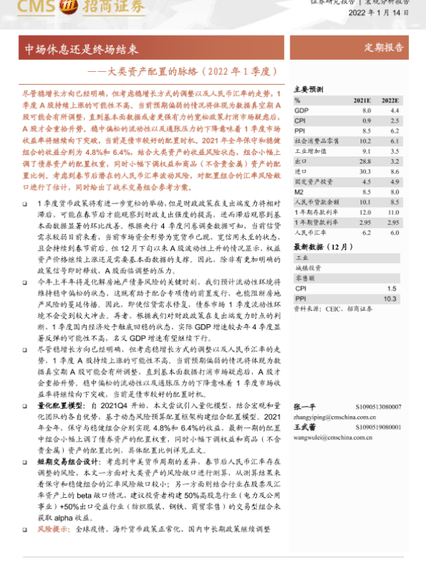 【海通证券】【20220114】大类资产配置的脉络(2022年1季度):中场休息还是终场结束-25页