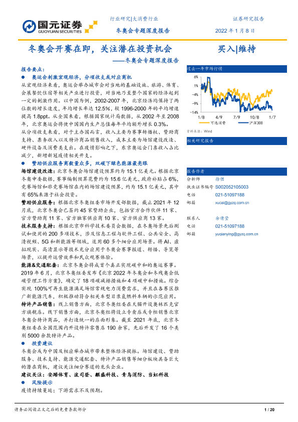 【国元证券】【20220108】大消费行业冬奥会专题深度报告:冬奥会开赛在即,关注潜在投资机会-20页