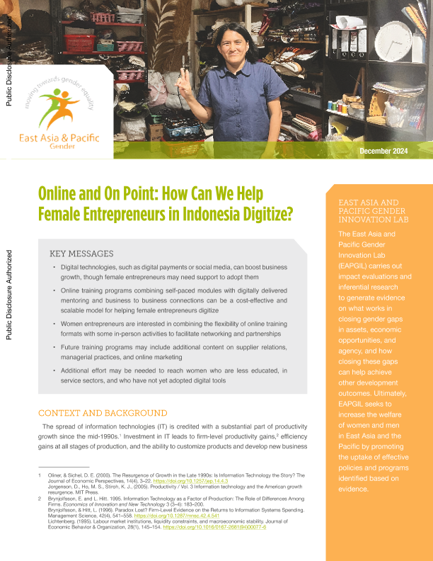 【The World Bank】【202412】Online and On Point How Can We Help Female Entrepreneurs in Indonesia Digitize?-10页
