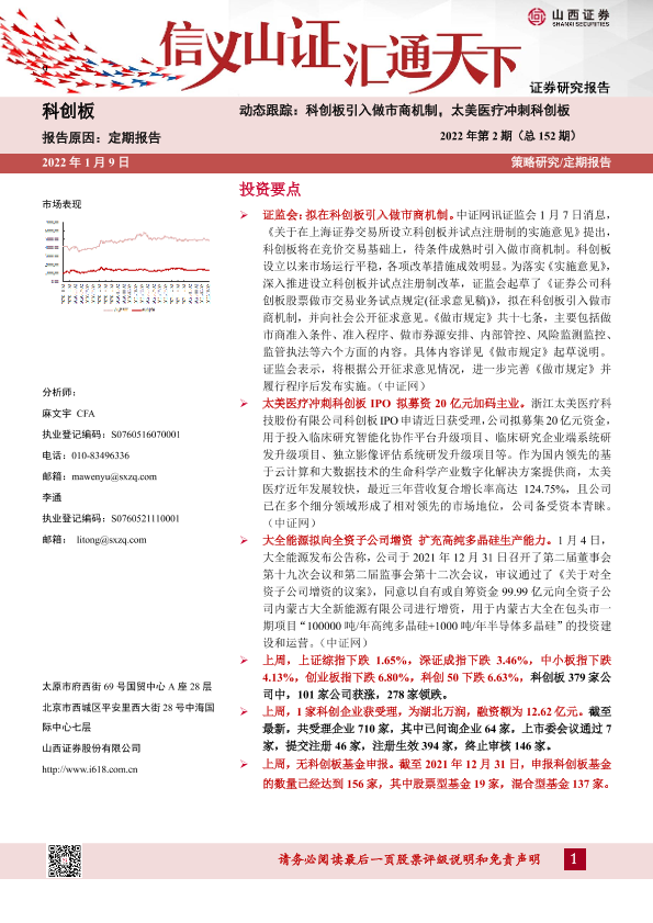 【山西证券】【20220109】动态跟踪2022年第2期(总152期):科创板引入做市商机制,太美医疗冲刺科创板-23页
