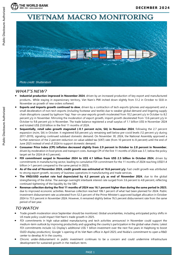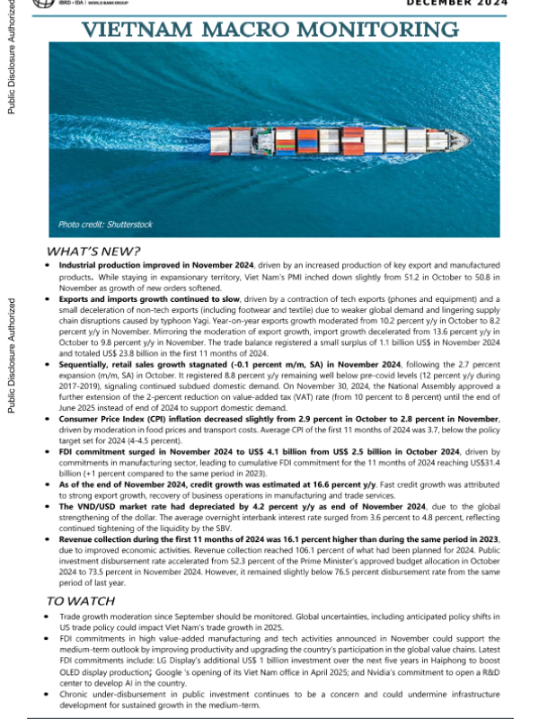 Macro Monitoring December 2024 World Bank economic development Vietnam