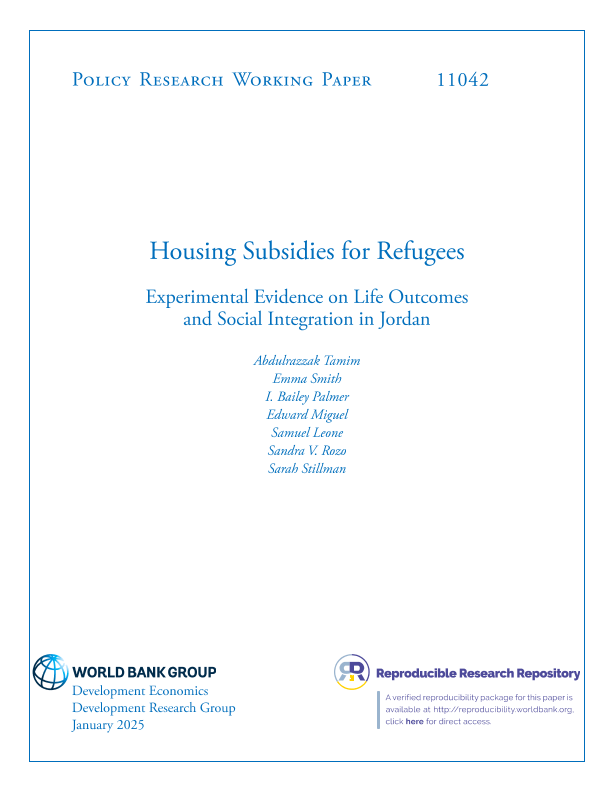 【World Bank】【2025】Housing Subsidies for Refugees Experimental Evidence on Life Outcomes and Social Integration in Jordan-112页