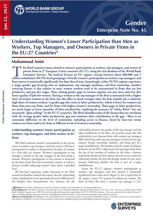 【World Bank】【20250122】Understanding women’s lower participation as workers, top managers, and owners in private firms in the EU-27 Countries-11页