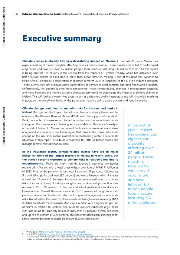 Financial Risk Insurance banking Malawi Climate Change