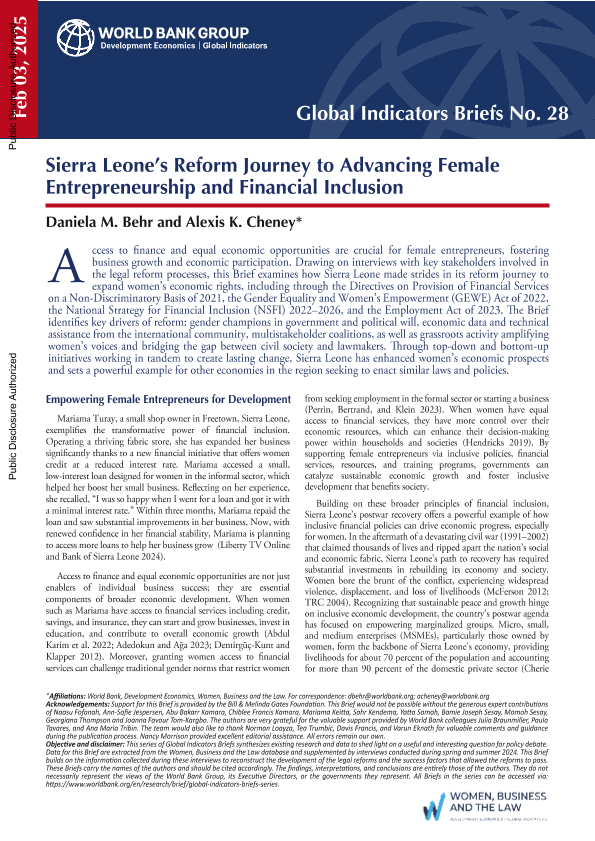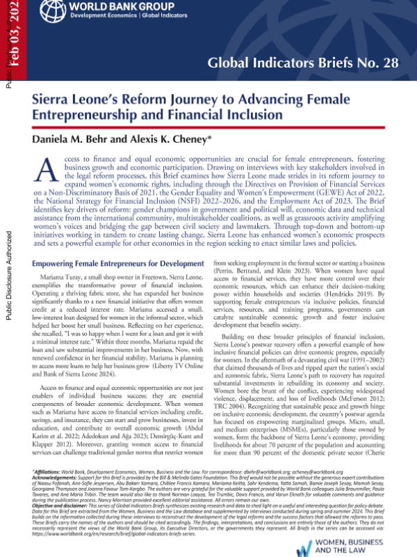 【World Bank】【2025】Sierra Leone’s Reform Journey to Advancing Female Entrepreneurship and Financial Inclusion-7页