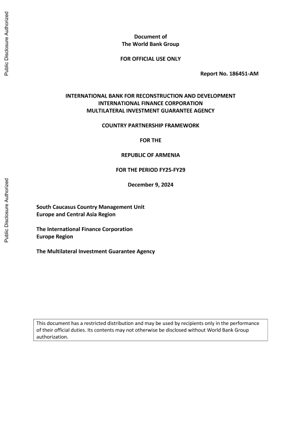 【World Bank Group】【20241209】Country Partnership Framework for the Republic of Armenia for the Period FY25-FY29-102页