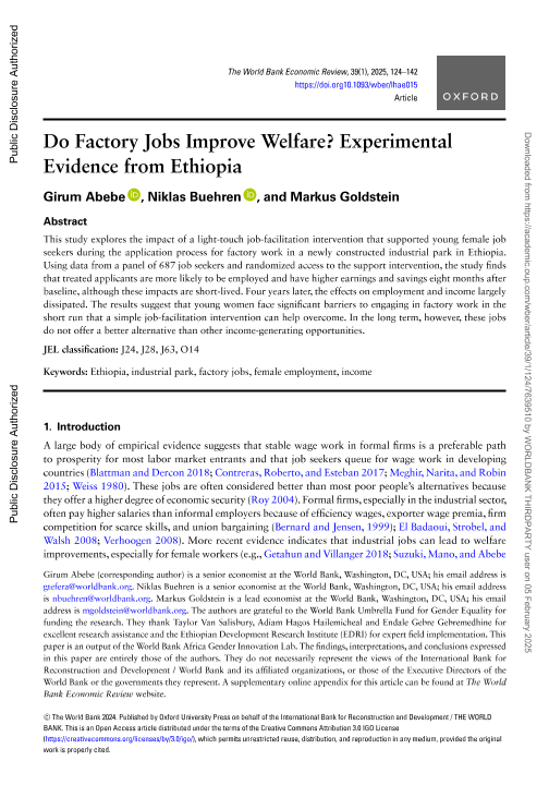 【The World Bank】【2025】Do Factory Jobs Improve Welfare? Experimental Evidence from Ethiopia-19页