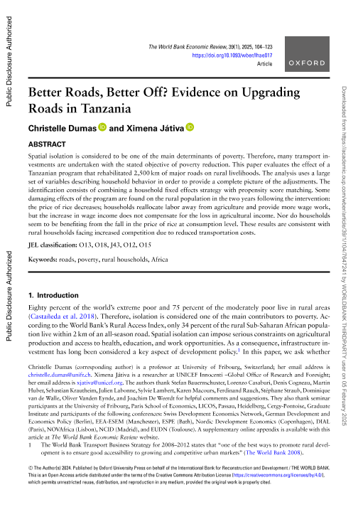 【The World Bank】【2025】Better Roads, Better Off? Evidence on Upgrading Roads in Tanzania-20页