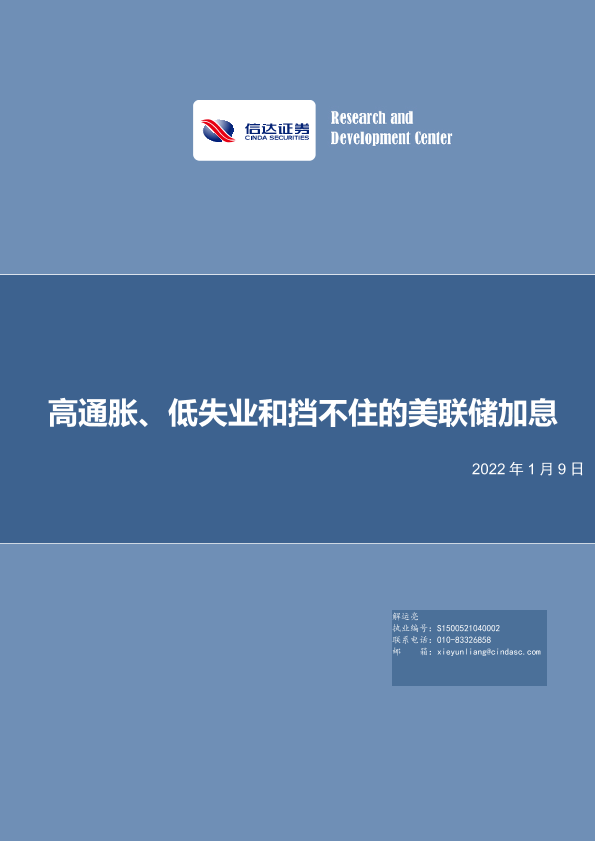 【信达证券】【20220109】高通胀、低失业和挡不住的美联储加息-25页