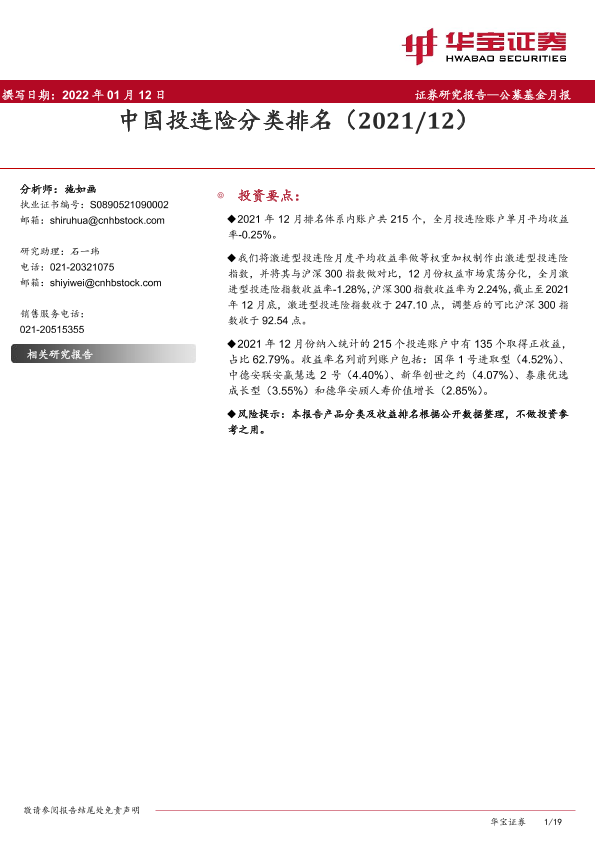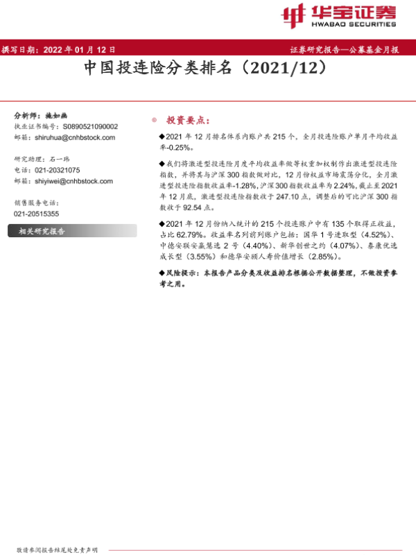 【华宝证券】【20220112】公募基金月报:中国投连险分类排名(202112)-19页