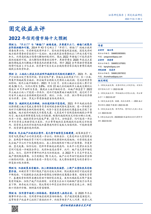 【国盛证券】【20220109】2022年信用债市场十大预测-20页