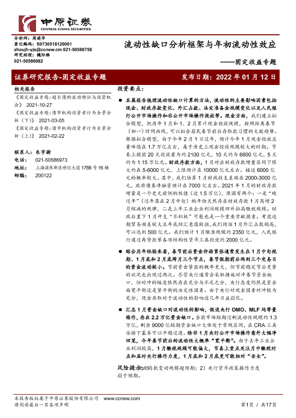 【中原证券】【20220112】固定收益专题:流动性缺口分析框架与年初流动性效应-17页