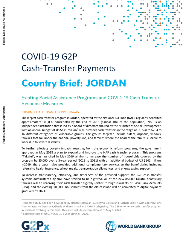 【World Bank】【20200506】COVID-19 G2P Cash-Transfer Payments Country Brief JORDAN-3页