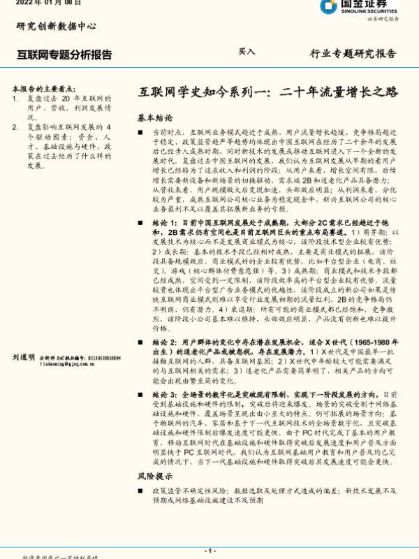 【国金证券】【20220108】互联网行业专题分析报告:互联网学史知今系列一,二十年流量增长之路-27页
