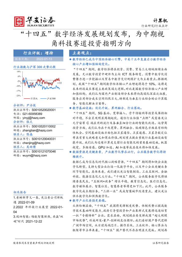 【华安证券】【20220113】计算机行业点评:“十四五”数字经济发展规划发布,为中期视角科技赛道投资指明方向-15页