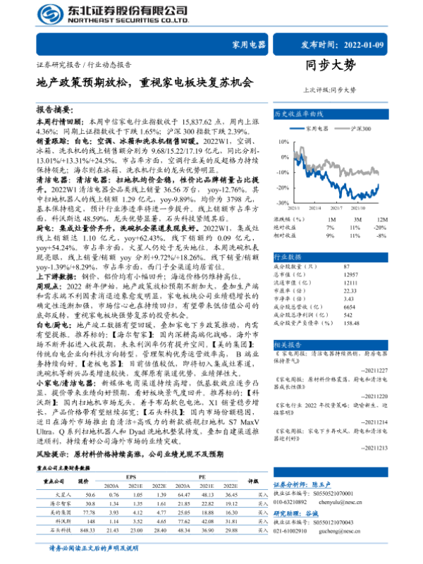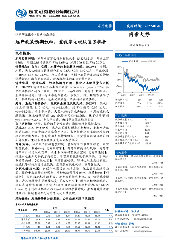 【东北证券】【20220109】家用电器行业动态报告:地产政策预期放松,重视家电板块复苏机会-16页