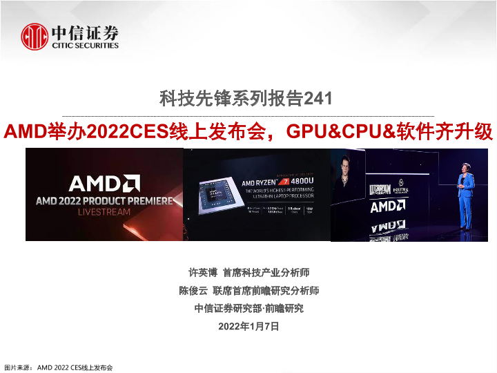【中信证券】【20220107】科技行业科技先锋系列报告241:AMD举办2022CES线上发布会,GPU&CPU&软件齐升级-22页