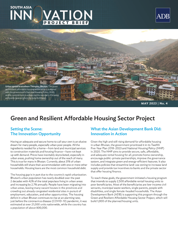 Urban Development Disaster Resilience Bhutan Affordable Housing green building