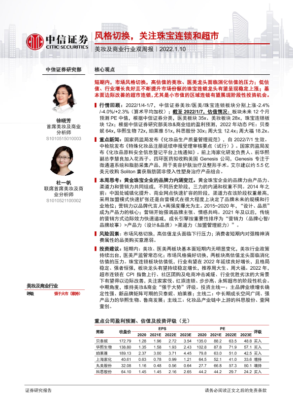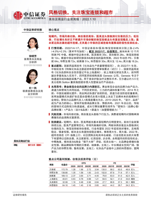 【中信证券】【20220110】美妆及商业行业双周报:风格切换,关注珠宝连锁和超市-18页