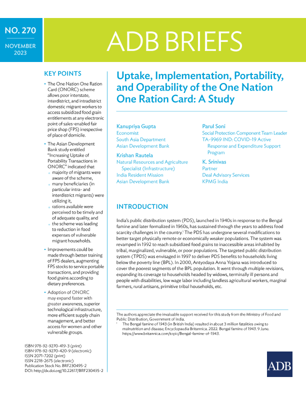 【ADB】【202311】Uptake, Implementation, Portability, and Operability of the One Nation One Ration Card A Study-10页