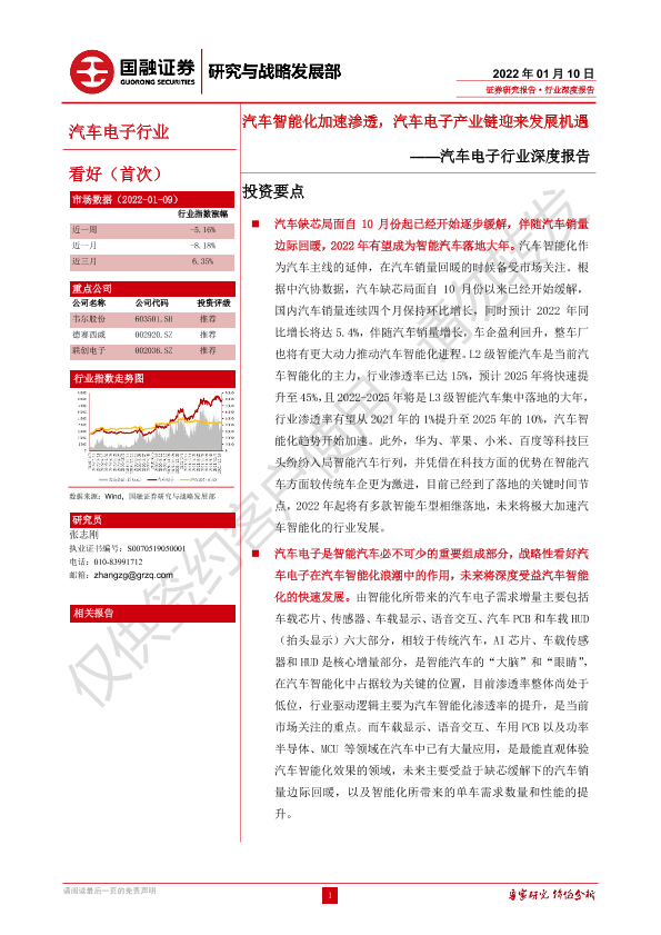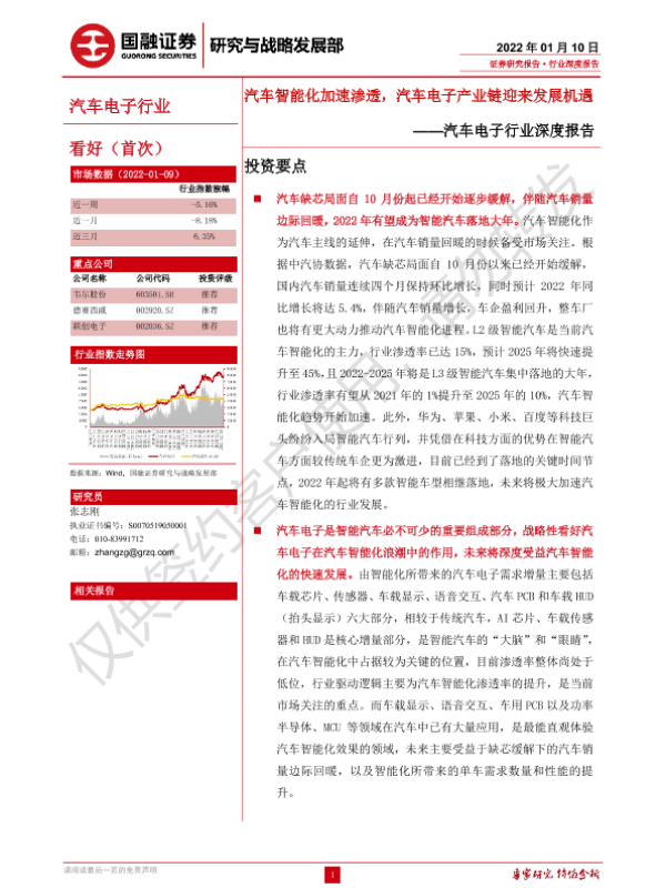 【国融证券】【20220110】汽车电子行业深度报告:汽车智能化加速渗透,汽车电子产业链迎来发展机遇-42页