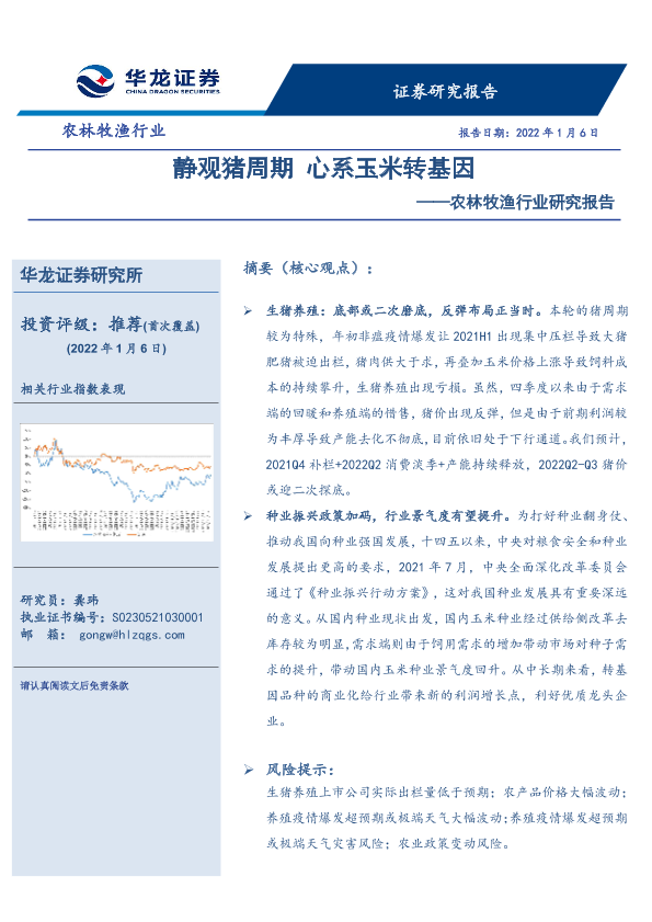 【华龙证券】【20220106】农林牧渔行业研究报告:静观猪周期,心系玉米转基因-25页