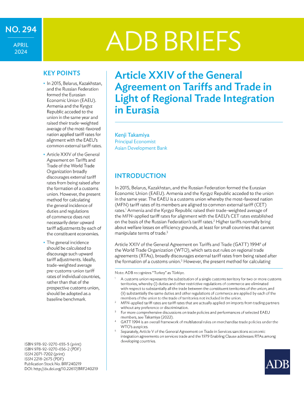 【Asian Development Bank】【2024】Article XXIV of the General Agreement on Tariffs and Trade in Light of Regional Trade Integration in Eurasia-8页