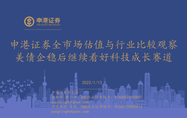 【申港证券】【20220113】全市场估值与行业比较观察:美债企稳后继续看好科技成长赛道-26页