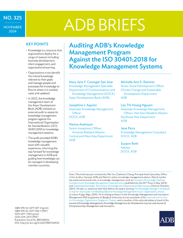【Asian Development Bank (ADB)】【202411】Auditing ADB’s Knowledge Management Program Against the ISO 30401 2018 for Knowledge Management Systems-7页
